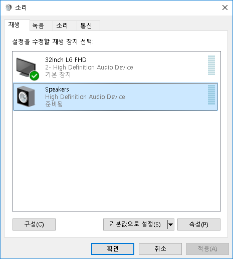 삼성tv모니터에서 소리 ndivia high definition audio, 삼성 스피커에서 소리 ndivia high definition audio 두개가 겹쳐서 그런거 같은데 삼성tv모니터에서만 소리나는데 삼성 스피커에서 소리로 바꾸는 방법이 있을까요?